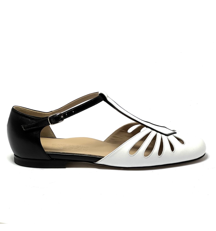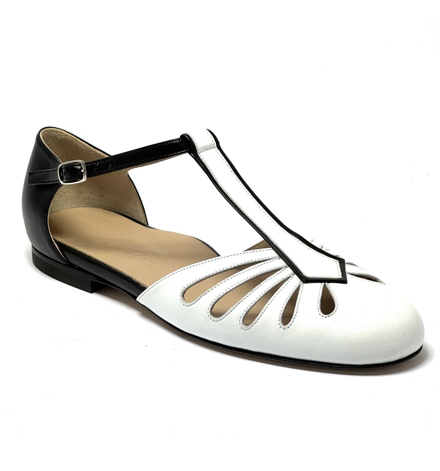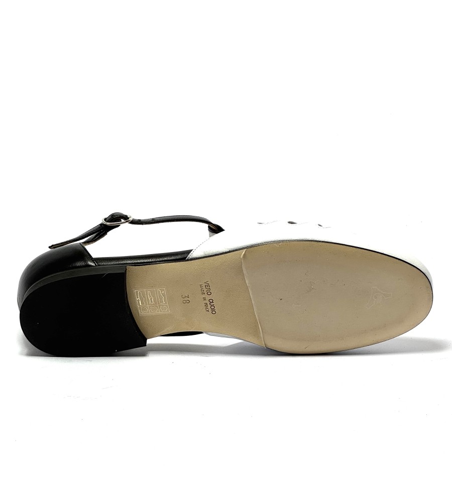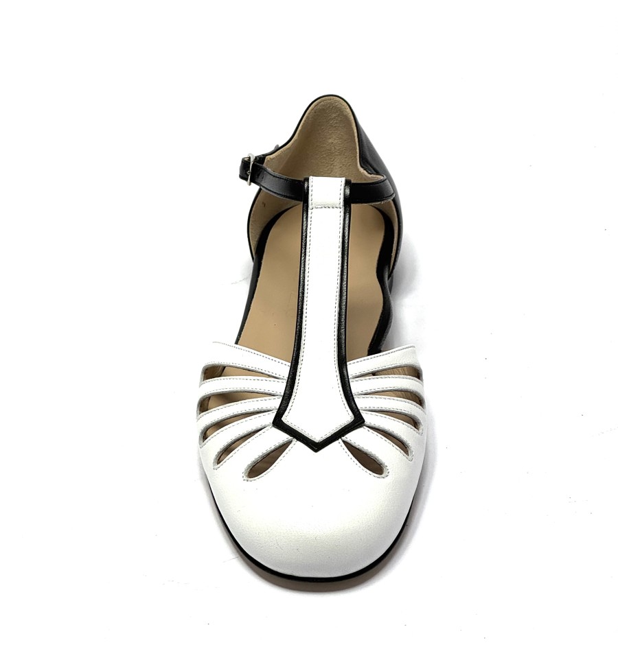 Scarpa da ballo per donna ottima per ballo da sala liscio boogie woogie swing e lindy hop punta chiusa articolo 482MB sottopiede in memory foam tomaia in pelle bianca con riporti in pelle nera suola in cuoio pomiciato tacco 10