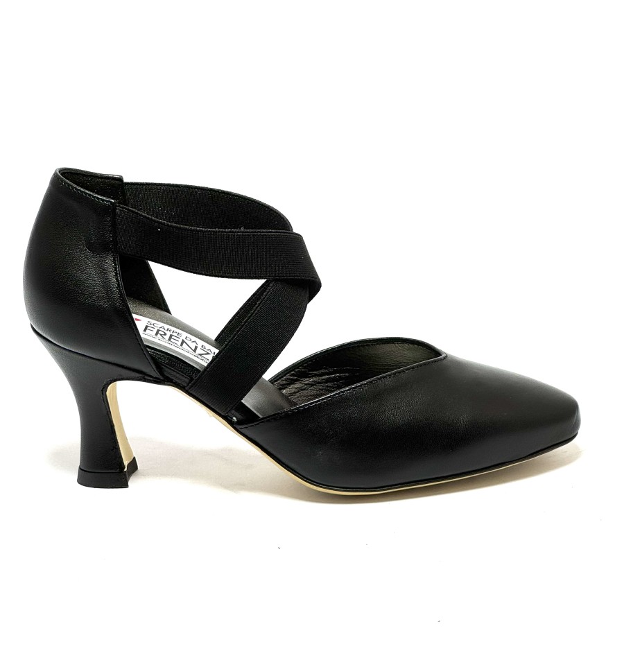 Scarpa da ballo per donna ottima per ballo da sala liscio latino tango punta chiusa articolo 07F sottopiede in memory foam tomaia in pelle nera con elastici sul collo del piede suola in cuoio pomiciato tacco 70 a rocchetto