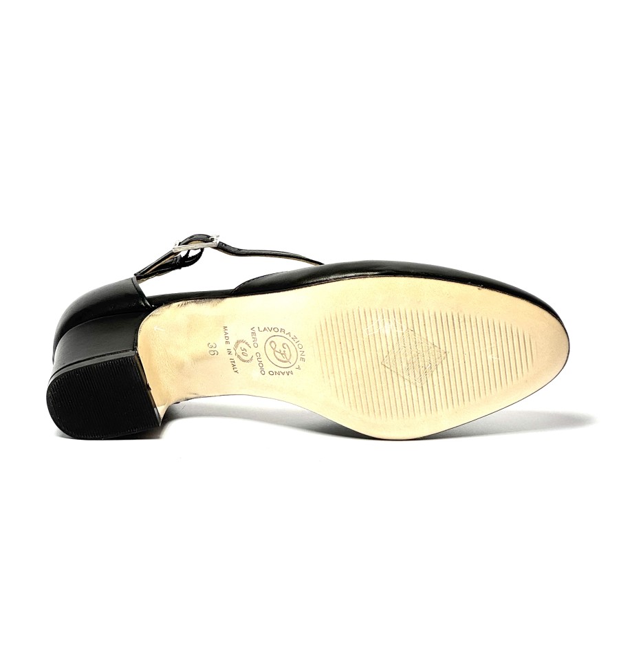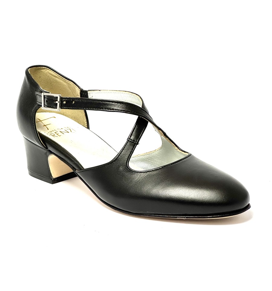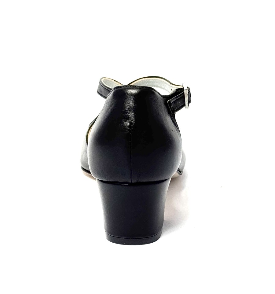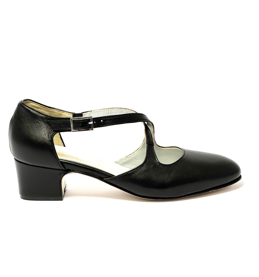 Scarpa da ballo da donna ottima per ballo da sala liscio articolo 2386 punta chiusa sottopiede in Memory Foam Comfort tomaia in pelle nera suola in cuoio pomiciato tacco 30 largo
