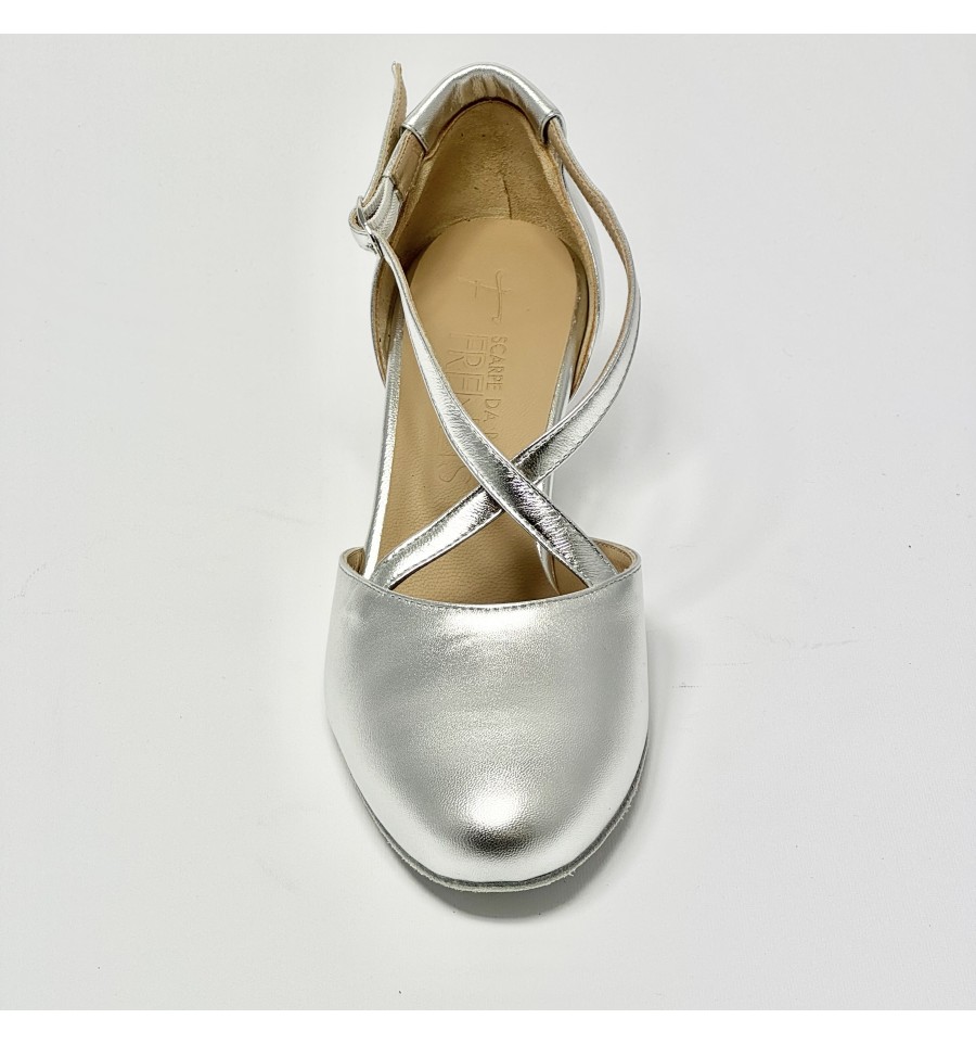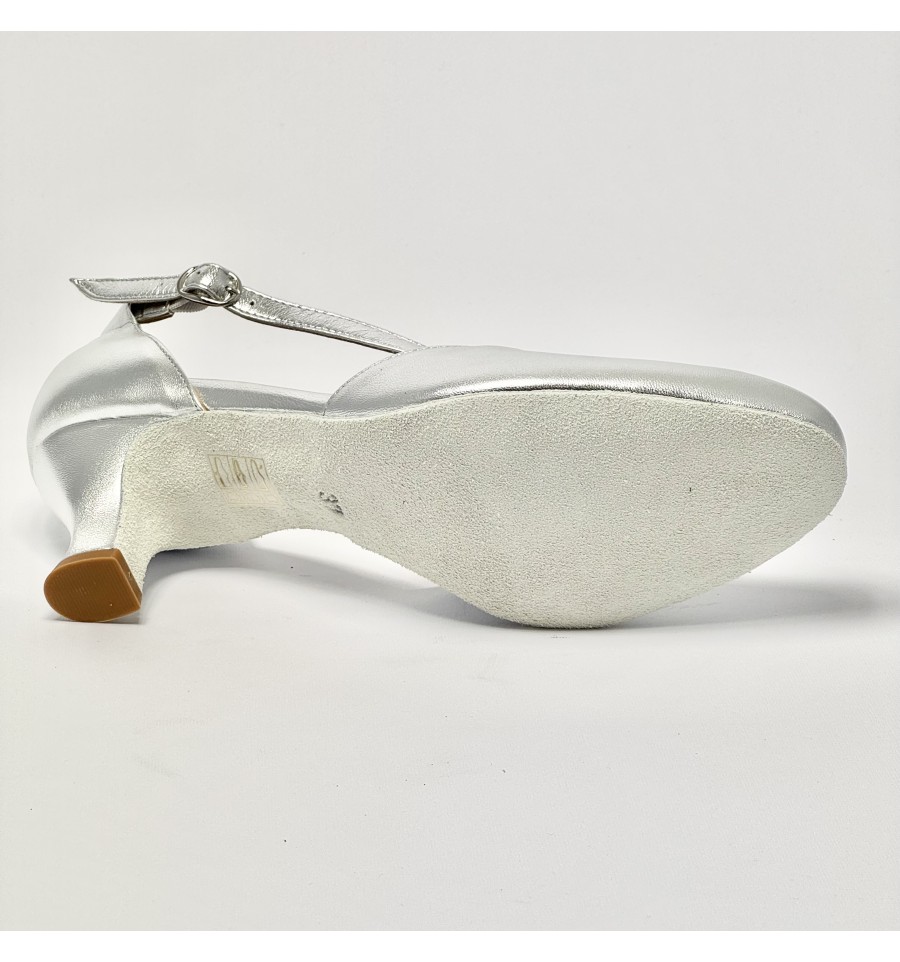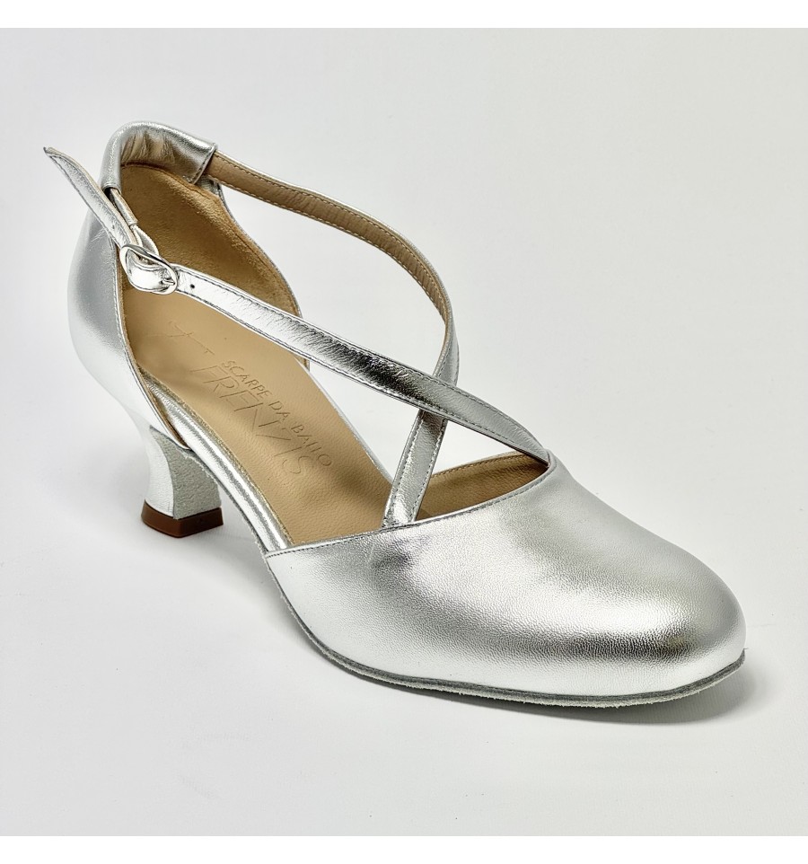 Scarpa da ballo da donna ottima per ballo da sala liscio standard punta chiusa articolo 116 sottopiede soffice tomaia in morbida pelle argento suo9loa in bufalo tacco 50 a rocchetto