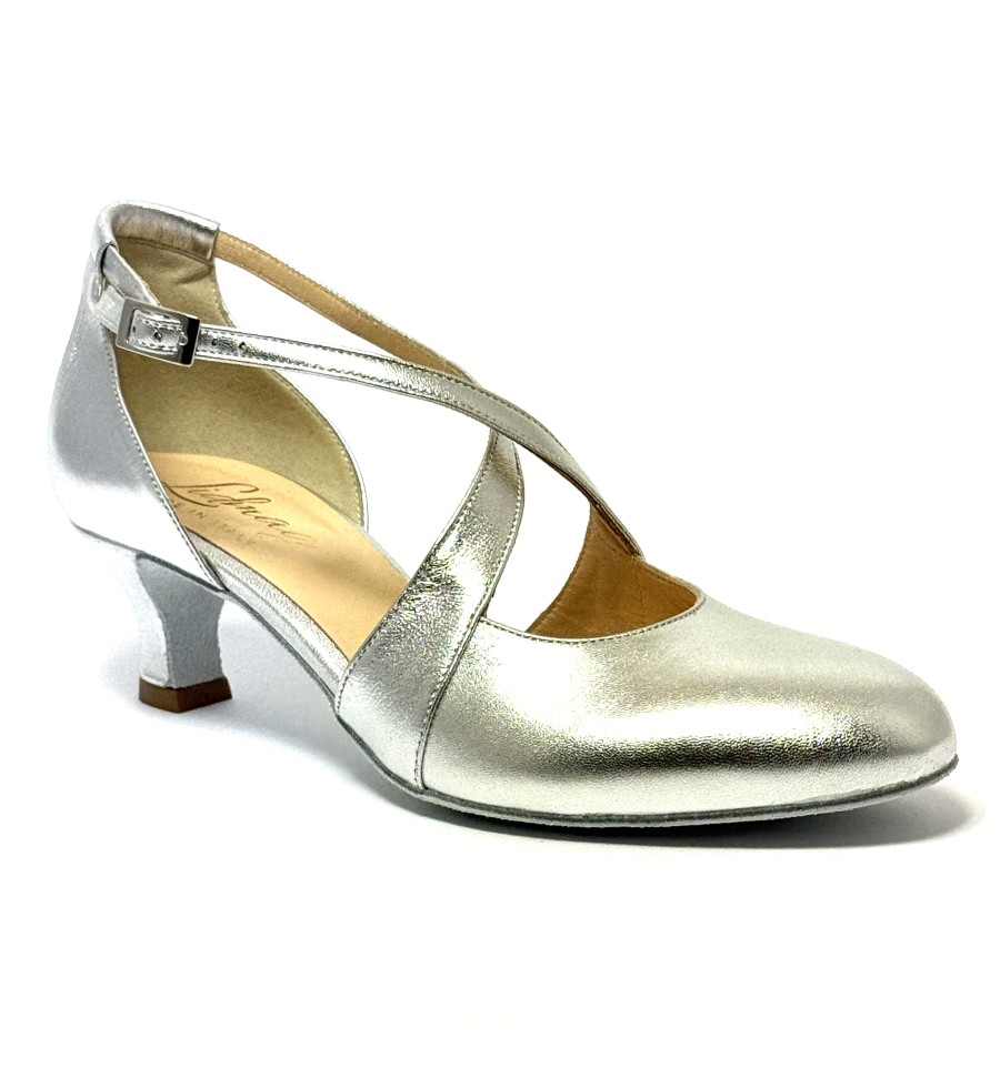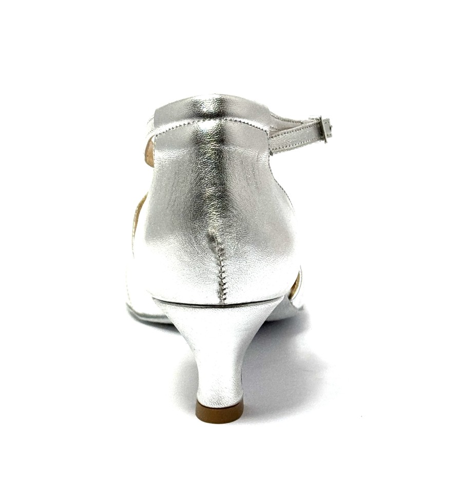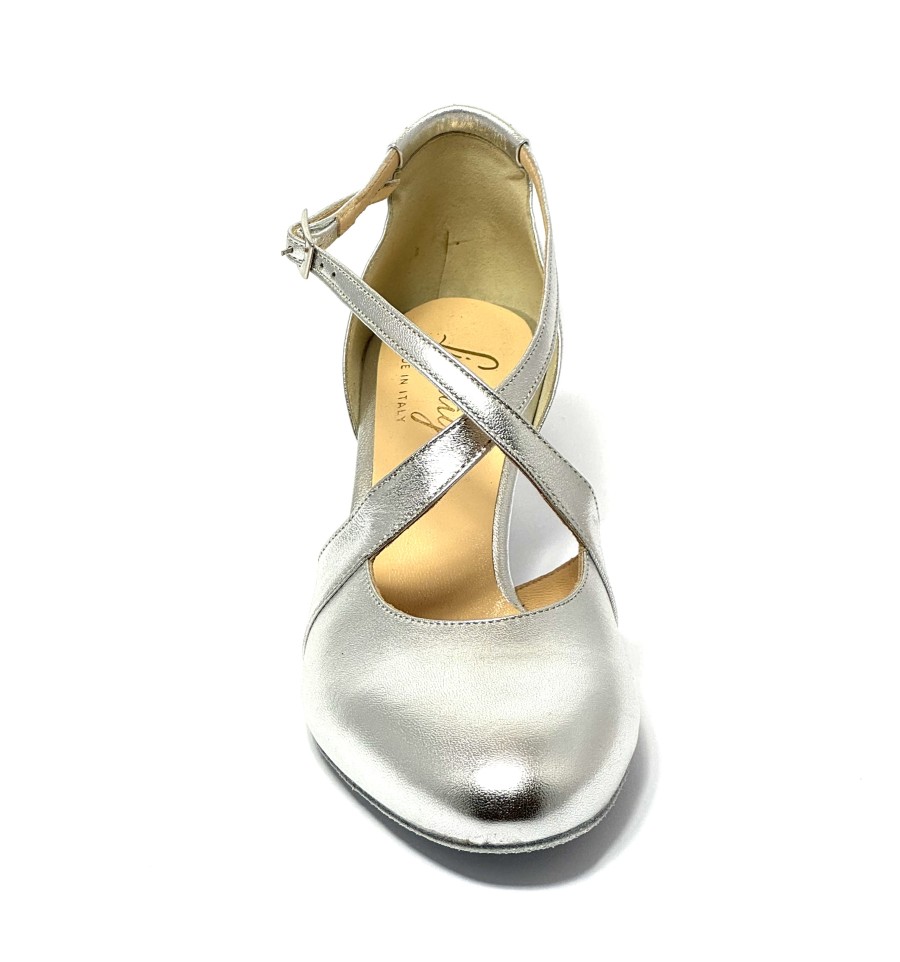 Scarpa da ballo per donna ottima per ballo da sala liscio standard latino tango punta chiusa articolo PC3 tomaia in pelle argento suola bufalo tacco 50 a rocchetto