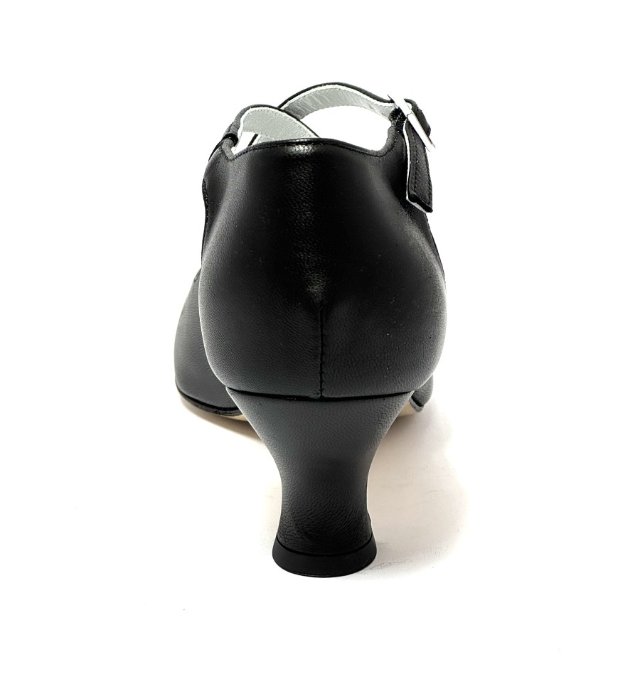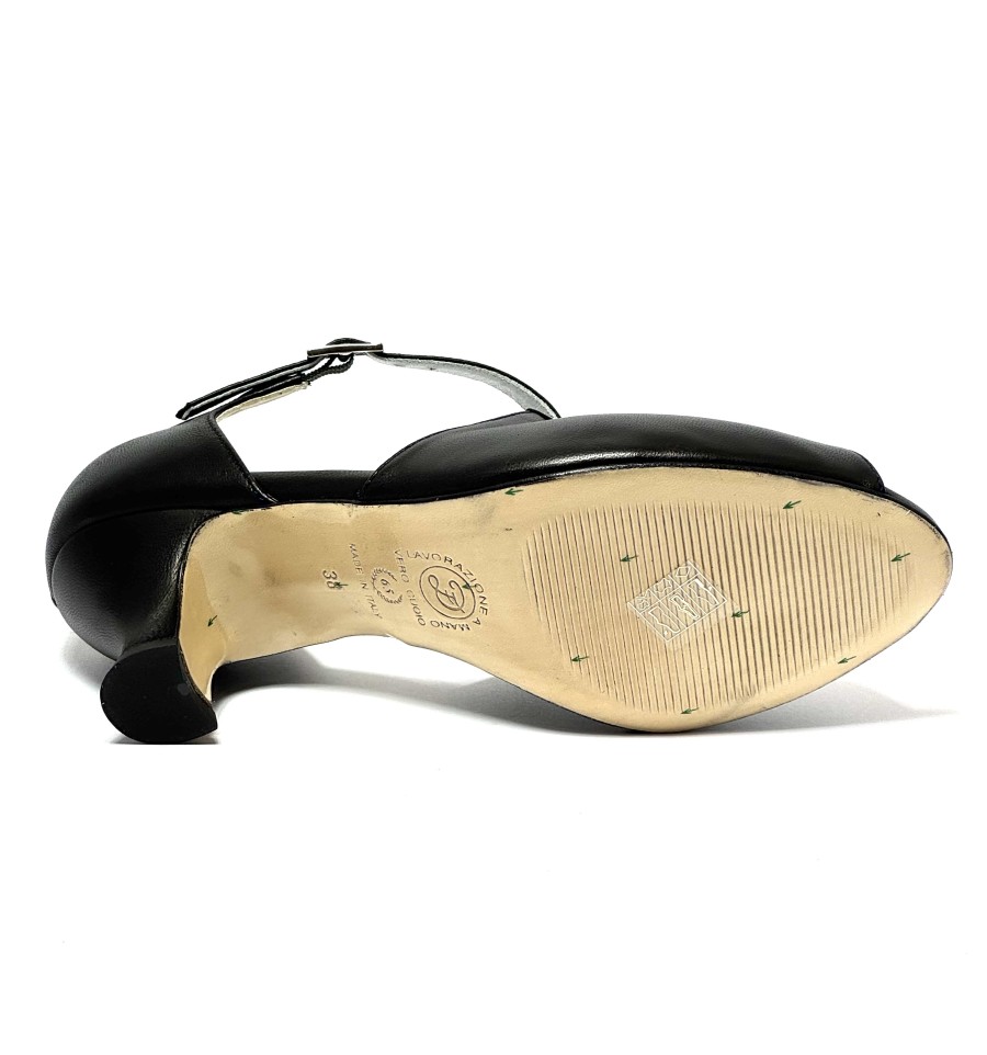 Scarpa da ballo per donna ottima per ballo latino americano ballo da sala liscio tango spuntata articolo 2082 sottopiede in memory foam tomaia in morbida pelle nera suola in cuoio pomiciato tacco 50 a rocchetto