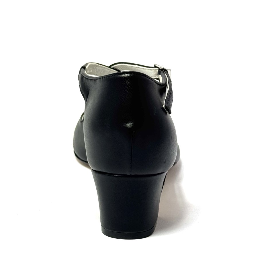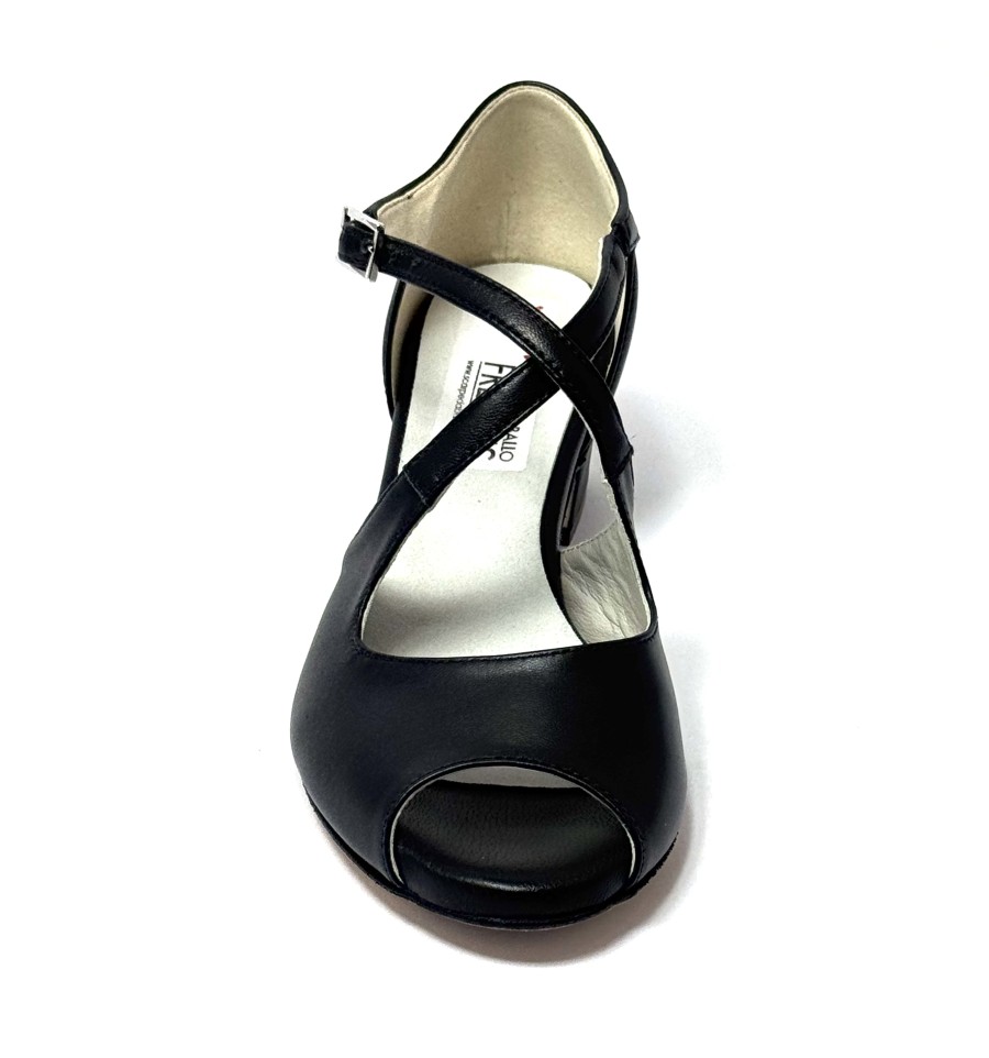 Scarpa da ballo per donna ottima per ballo da sala liscio latino americano tango spuntata articolo 2082 sottopiede in memory foam tomaia in pelle nera suola in cuoio pomiciato tacco 40 largo