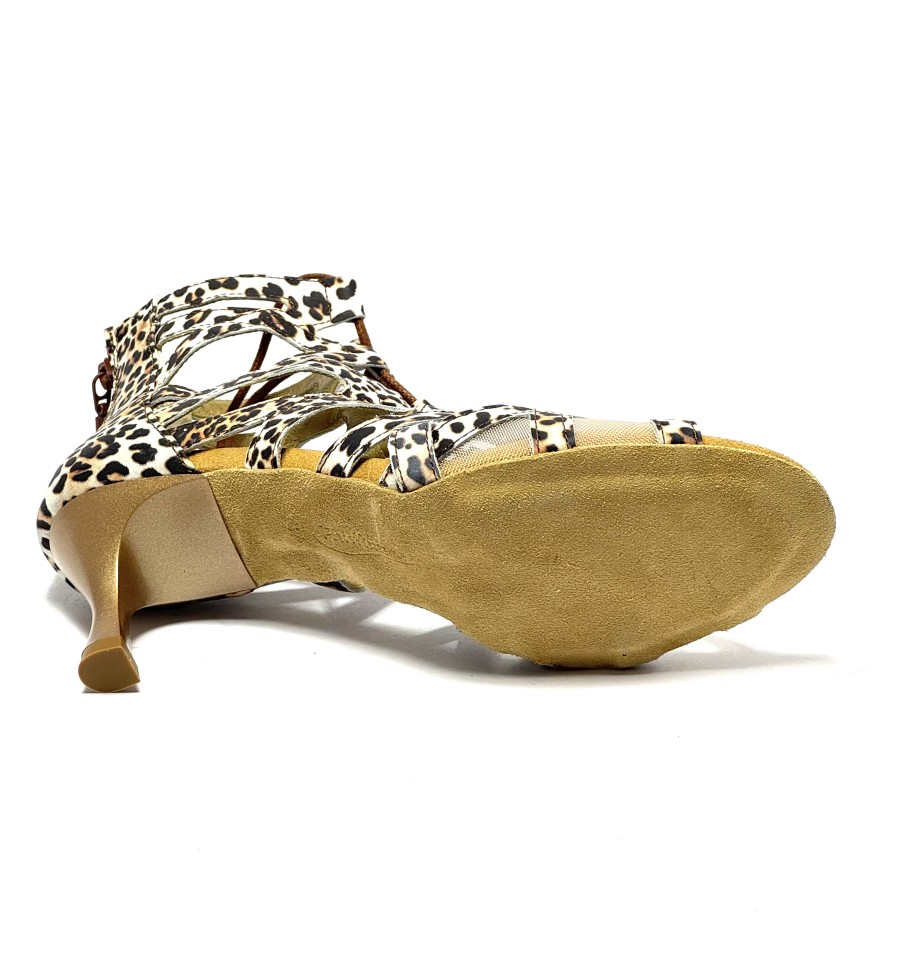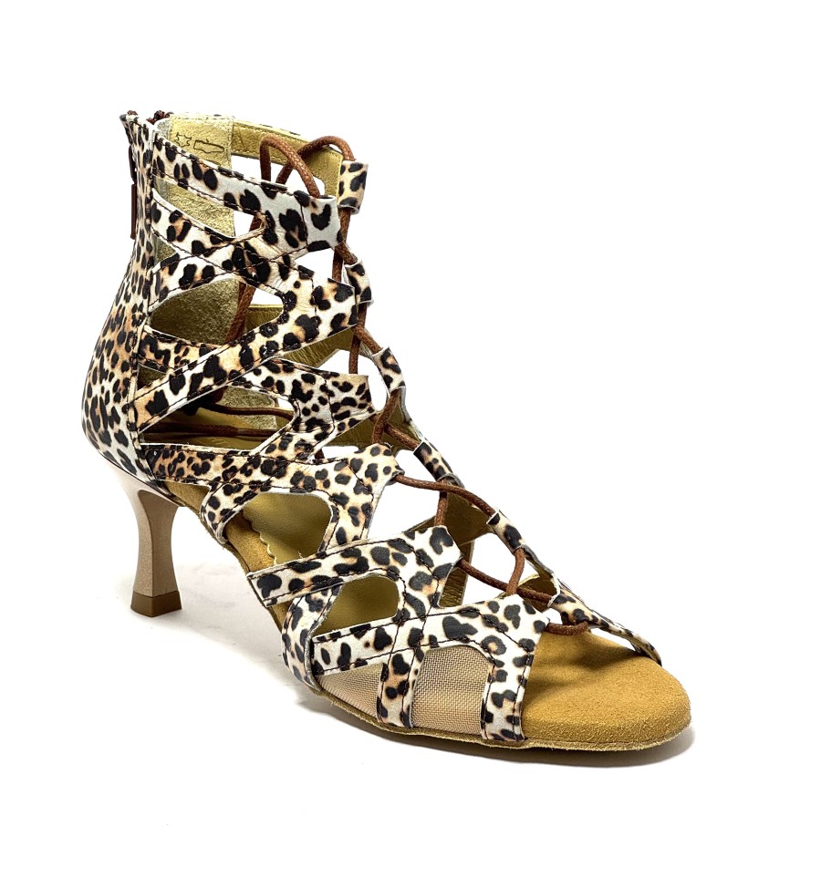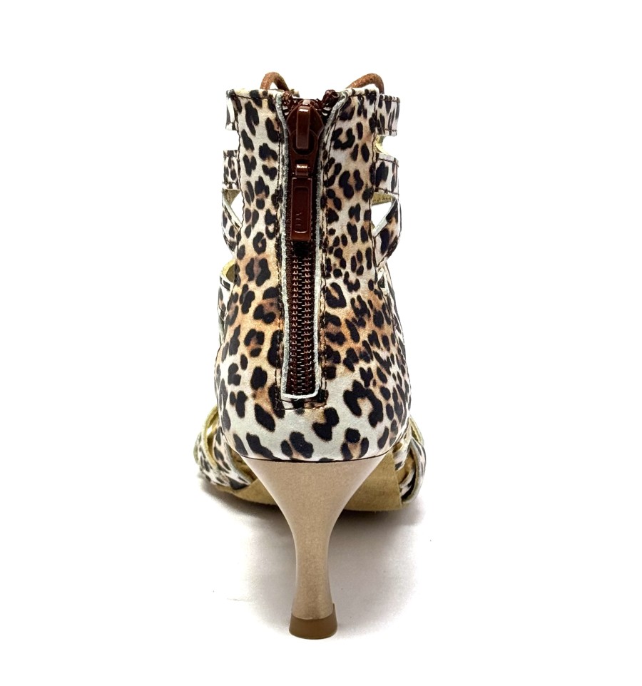 Scarpa da ballo per donna ottima per latino americano salsa bachata kizomba ballo da sala liscio tango spuntata e allacciata con zip posteriore al tallone articolo PD804 NET sottopiede in memory foam tomaia in pelle stampata leopardo suola in bufalo tacco 60 a rocchetto