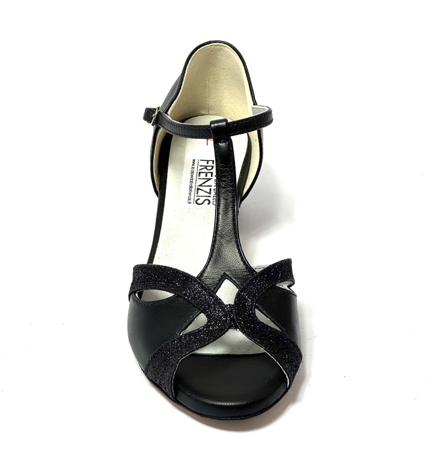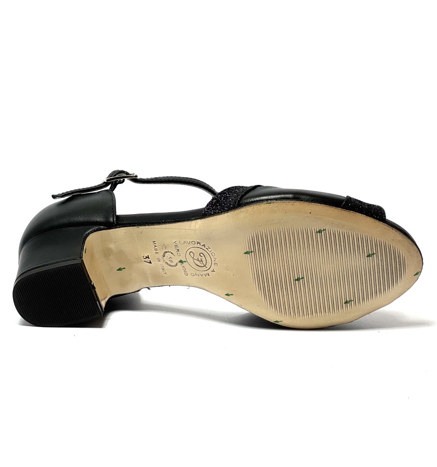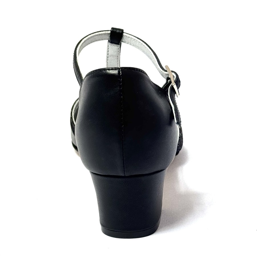 Scarpa da ballo per donna ottima per ballo da sala liscio latino americano tango spuntata articolo 2022 sottopiede in memory foam tomaia in pelle nera suola in cuoio pomiciato tacco 40 largo