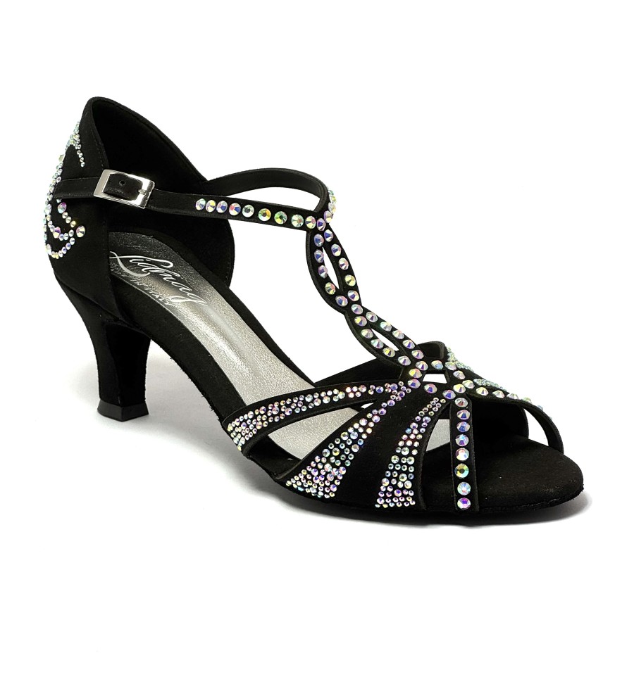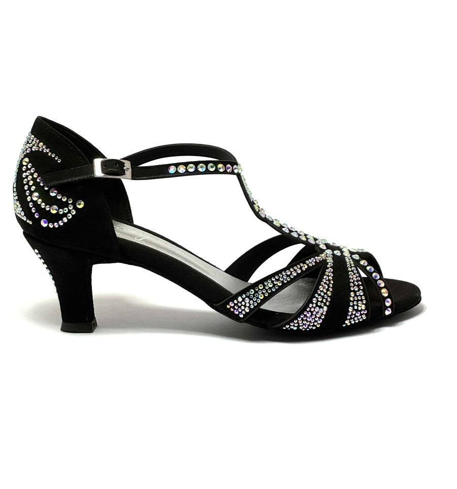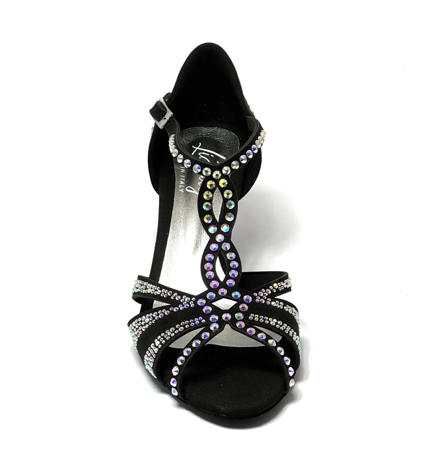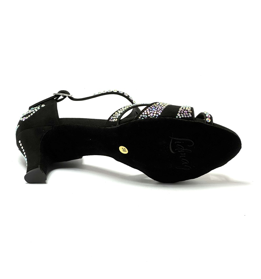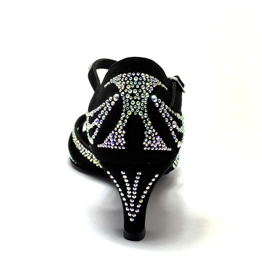 Scarpe da ballo per donna ottime per balli caraibici latino americano ballo da sala tango punta aperta articolo L13 sottopiede in memory foam tomaia in camoscio nero tutte decorate con strass boreali suola in cuoio pomiciato tacco 60 a stiletto