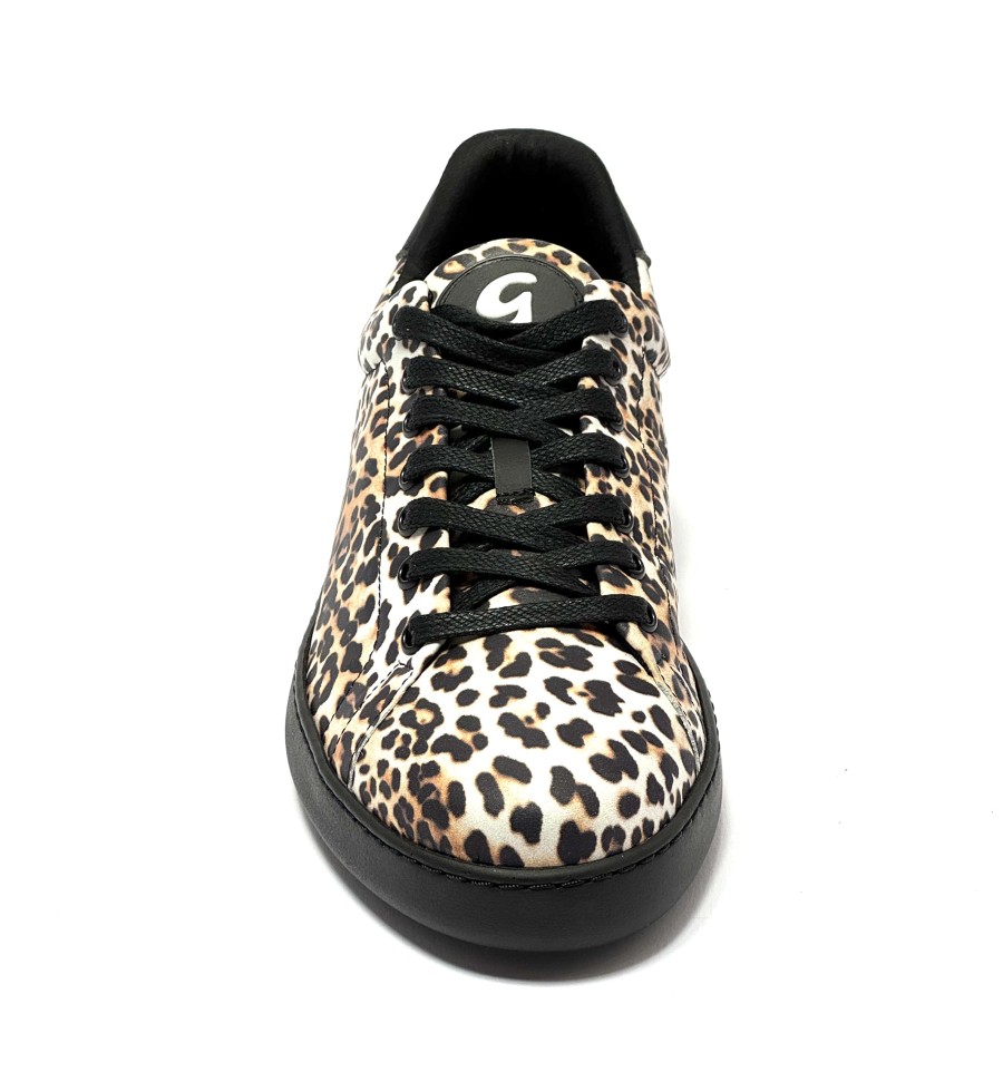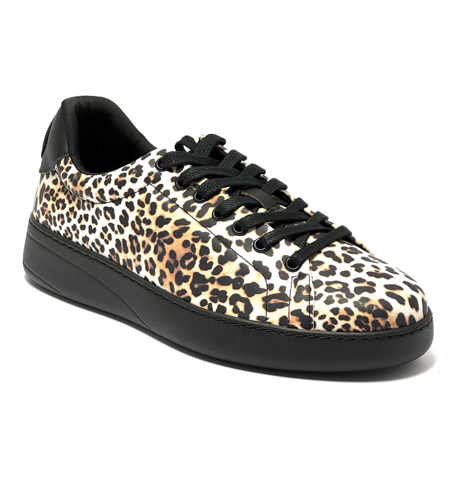 Snaeaker da ballo per donna ottima per salsa bachata swing caraibici latino americano ballo da sala tango allenamento allacciata articolo PD GR BALI sottopiede estraibile in memory foam tomaia in pelle leopardata e nera suola nera in gommina da ballo