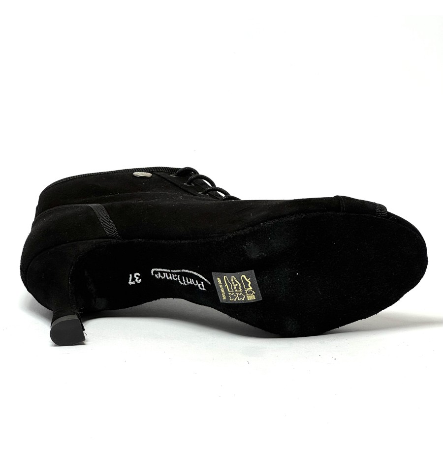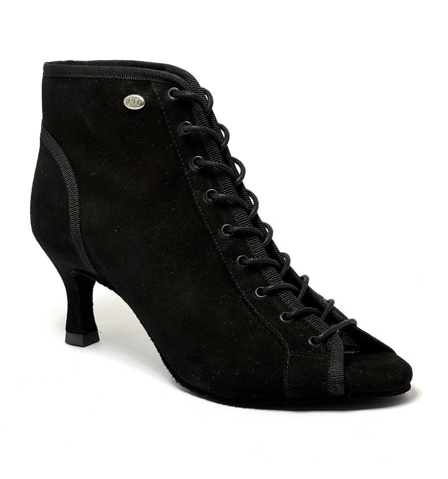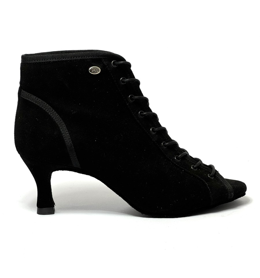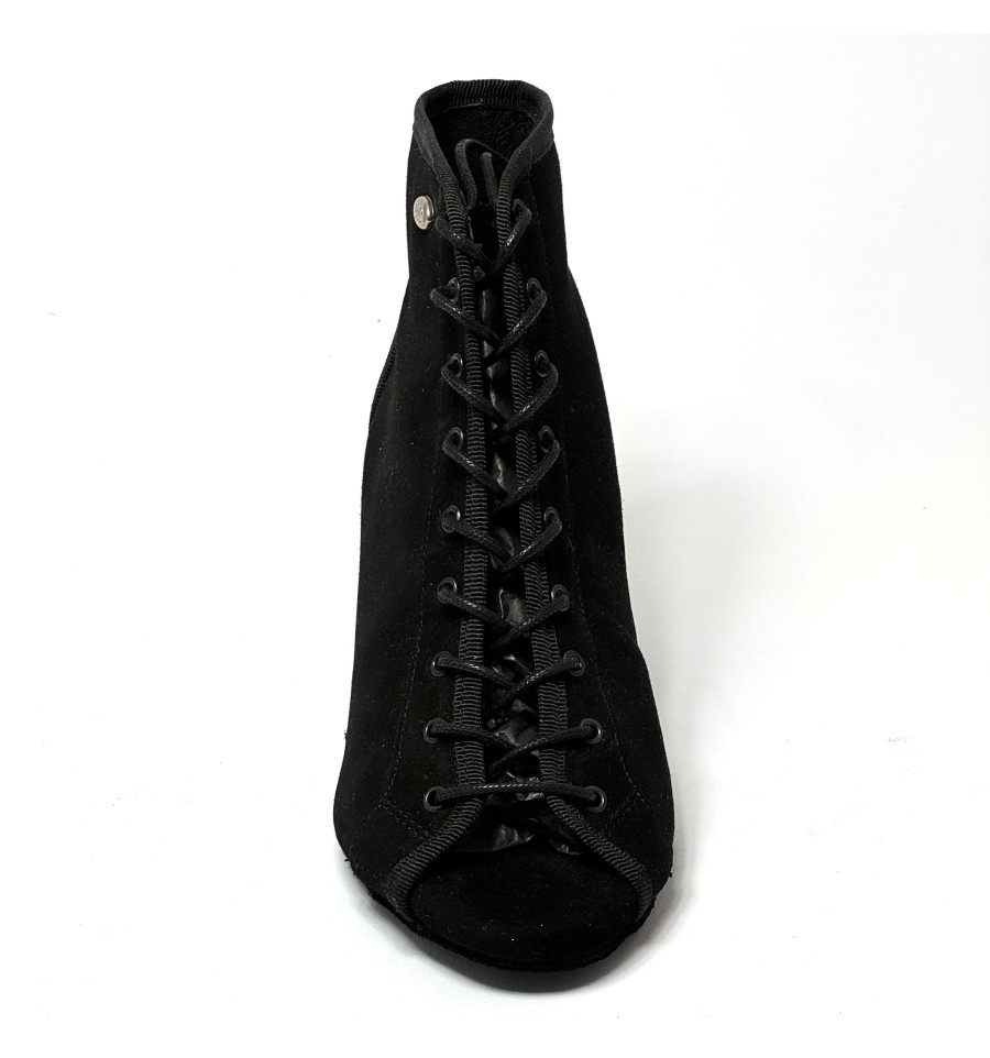 Stivaletto da ballo allacciato per donna ottimo per latino americano balli caraibici salsa bachata ballo da sala tango punta aperta articolo PD 815 sottopiede in memory foam tomaia in camoscio nero suola in bufalo tacco 60 a rocchetto