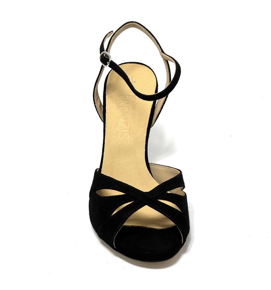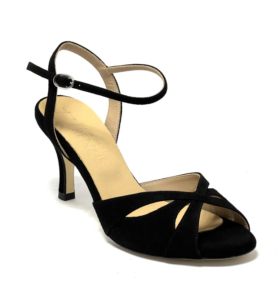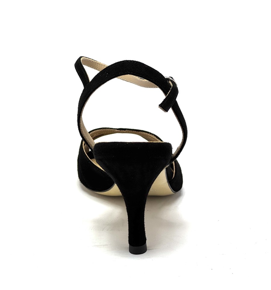 Scarpa da ballo per donna ottima per tango argentino ballo da sala latino spuntata articolo 519 sottopiede in memory foam tomaia in morbido camoscio nero suola in cuoio pomiciato tacco 70 a stiletto