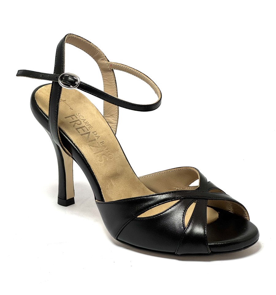 Scarpa da ballo per donna ottima per tango argentino ballo da sala latino spuntata articolo 519 sottopiede in memory foam tomaia in morbida pelle nera suola in cuoio pomiciato tacco 90 a stiletto