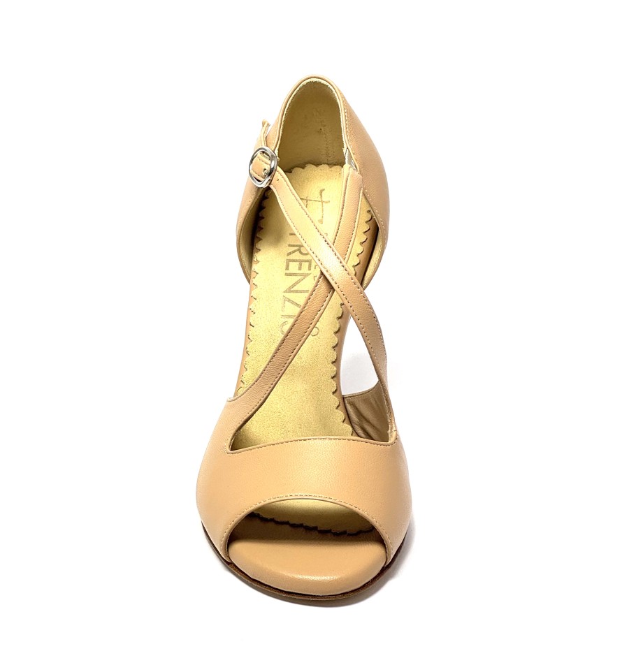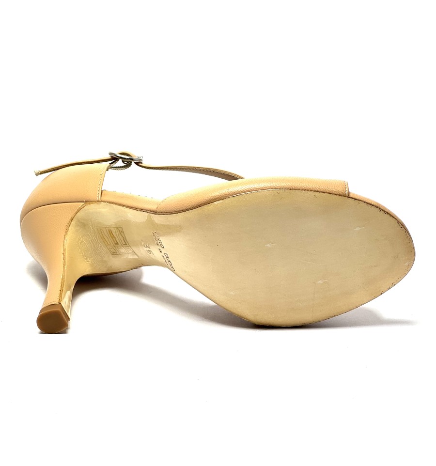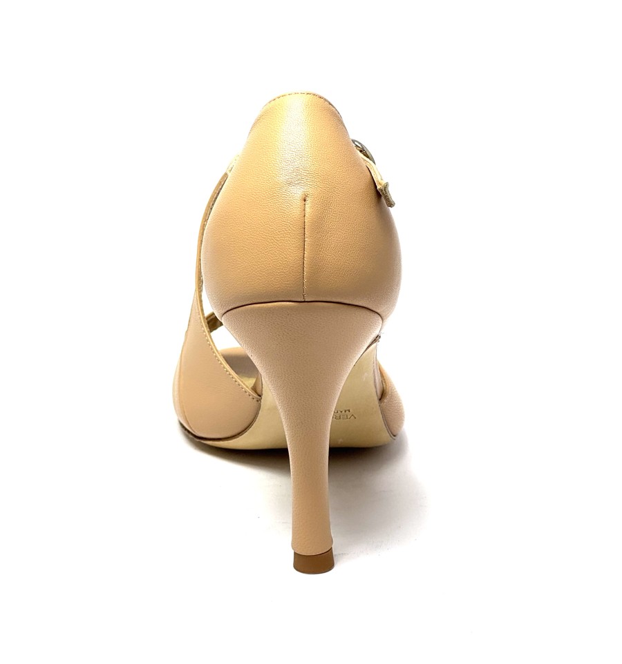 Scarpa da ballo da donna ottima per tango argentino latino americano e ballo da sala liscio spuntata articolo 166 sottopiede in Memory foam tomaia in morbida pelle color carne suola in cuoio pomiciato tacco 90 a stiletto