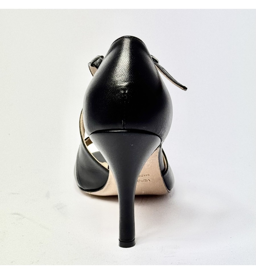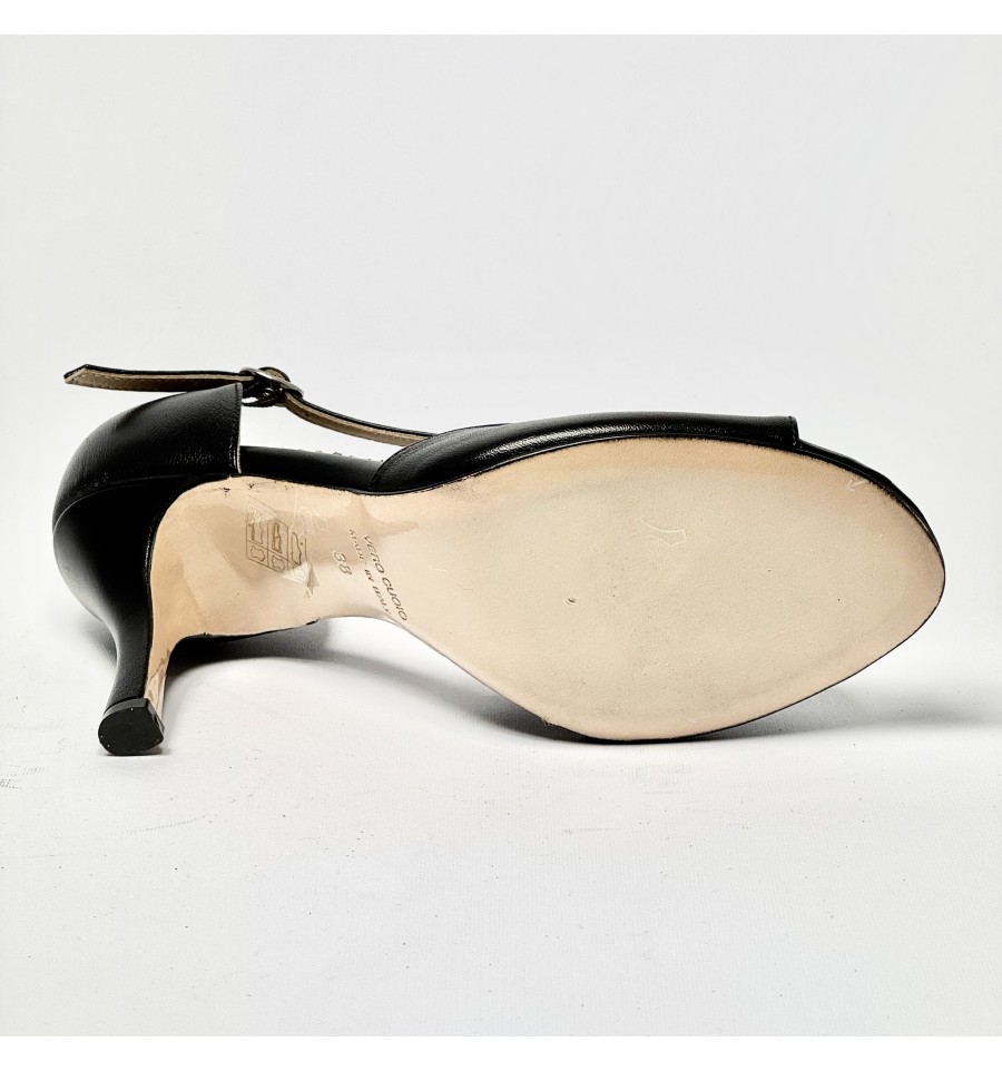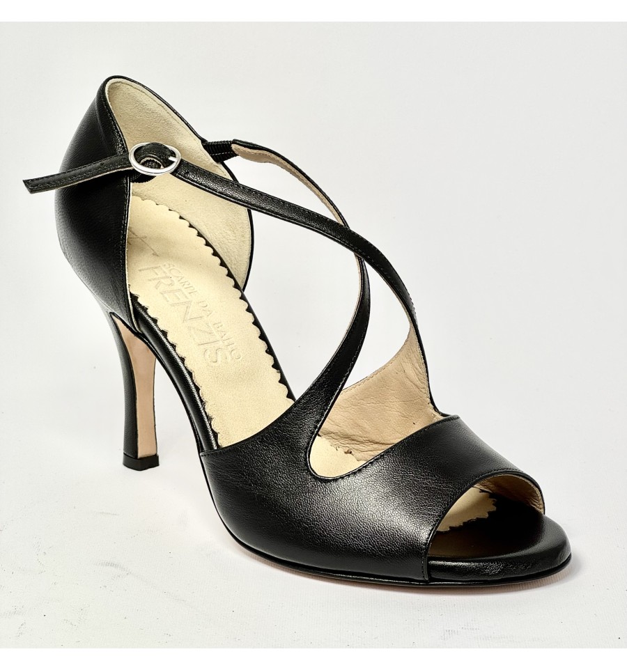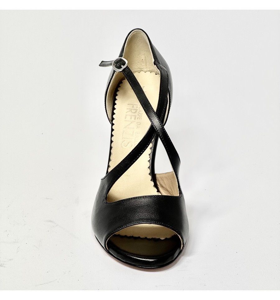 Scarpa da ballo da donna ottima per tango argentino e ballo da sala liscio articolo 166 spuntata sottopiede in Memory Foam Comfort tomaia in pelle nera suola in cuoio pomiciato tacco 90 a rocchetto sottile