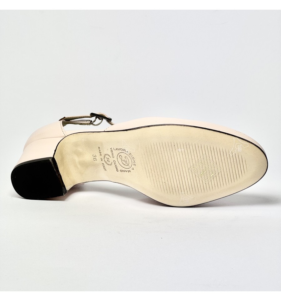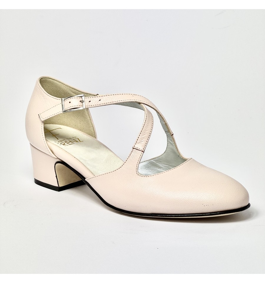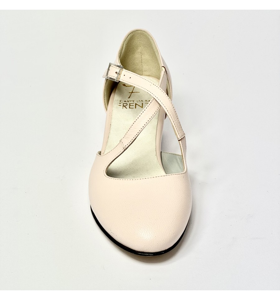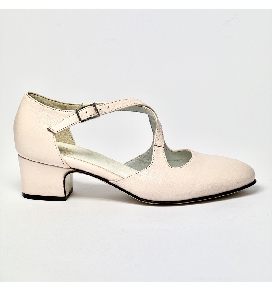 Scarpa da ballo da donna ottima per ballo da sala liscio articolo 2386 punta chiusa sottopiede in Memory Foam Comfort tomaia in morbida pelle cipria suola in cuoio pomiciato tacco 30 largo