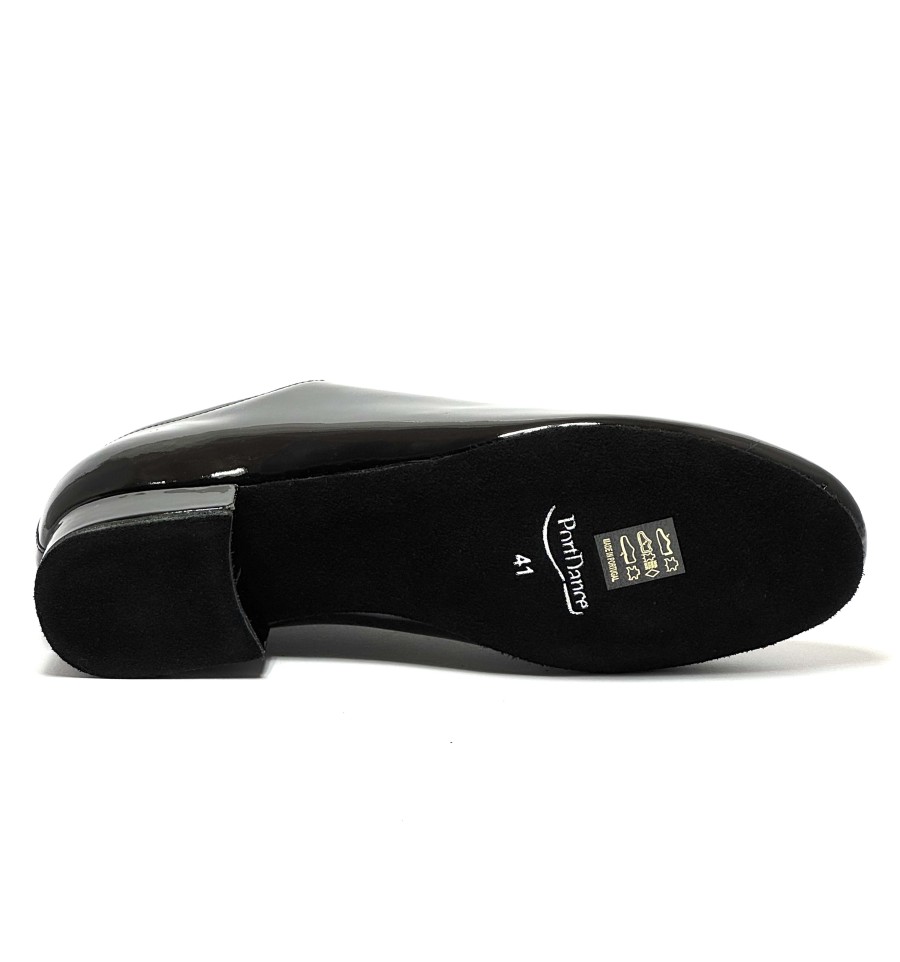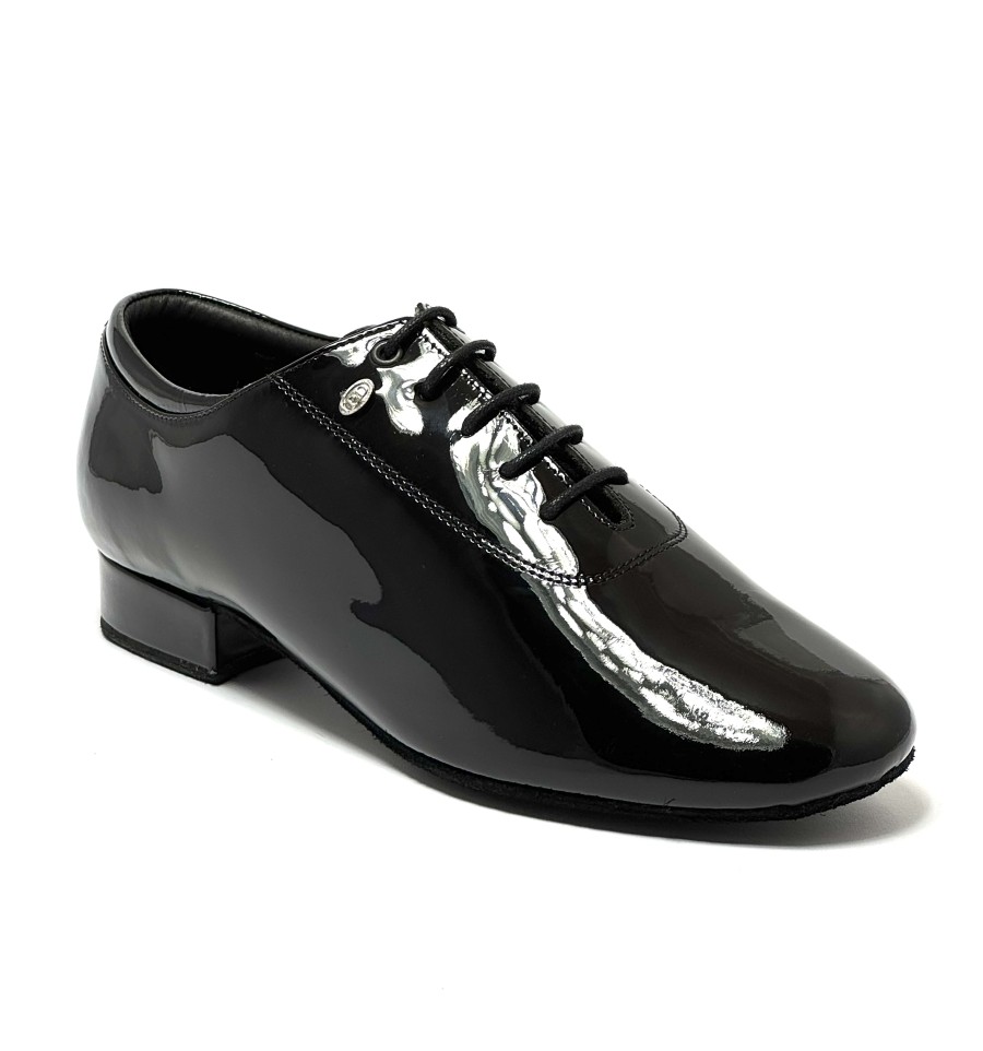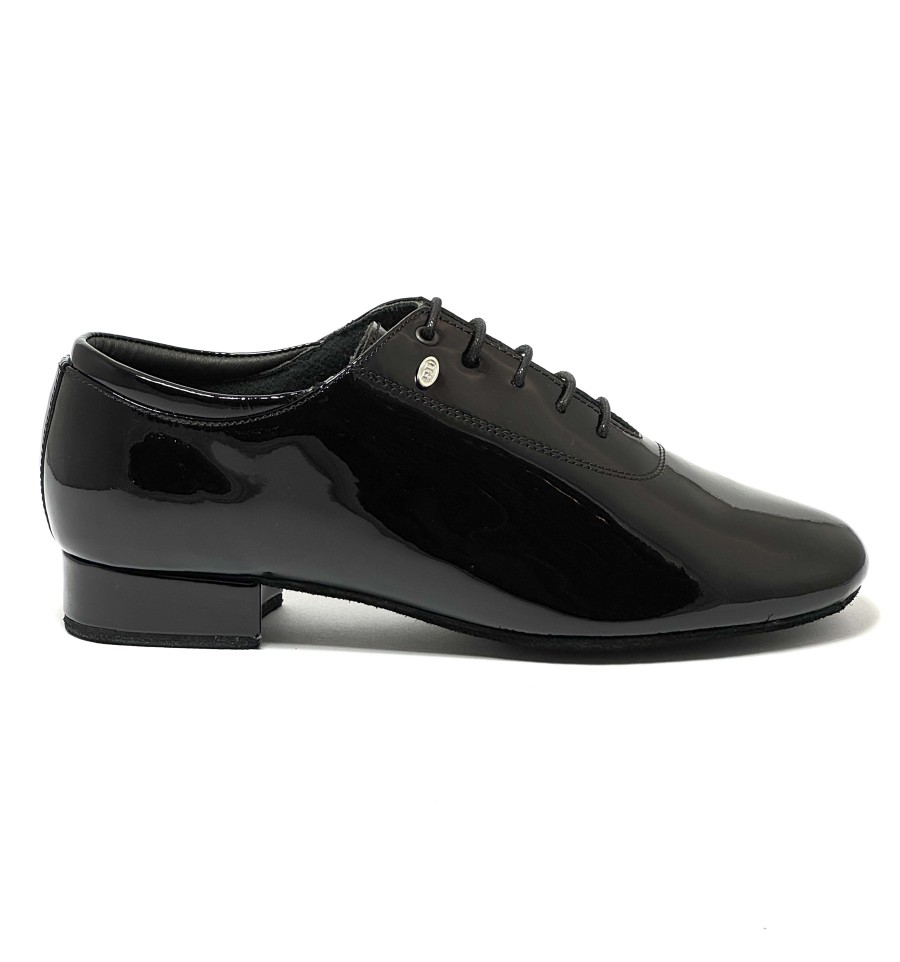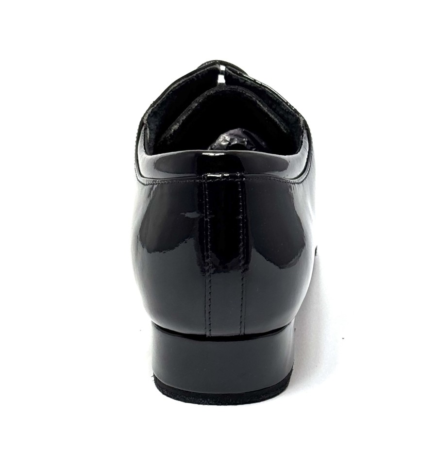 Scarpa da ballo per uomo ottima per ballo da sala liscio standard latino americano tango argentino articolo PD020 PREMIUM sottopiede in memory foam tomaia in vernice nera suola bufalo tacco 25