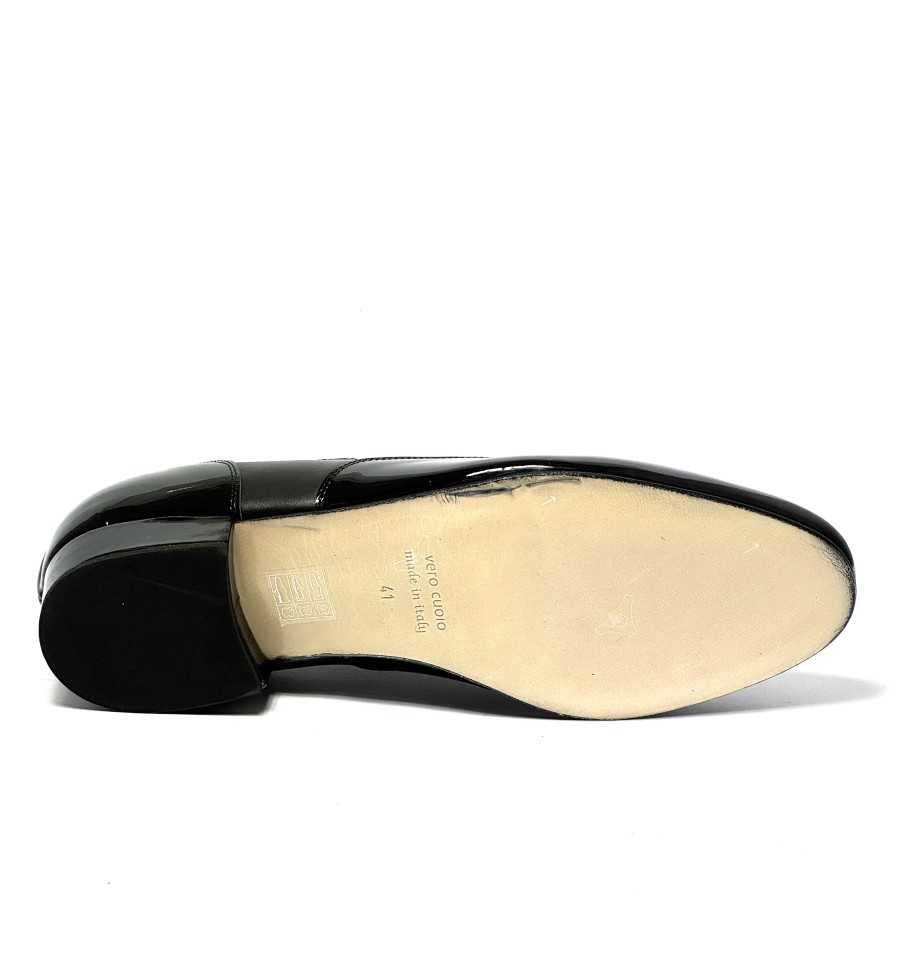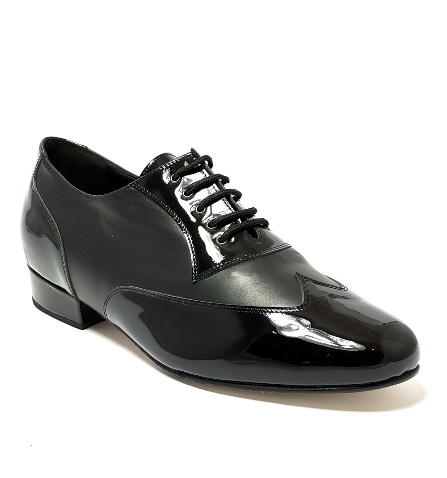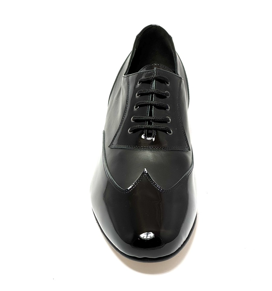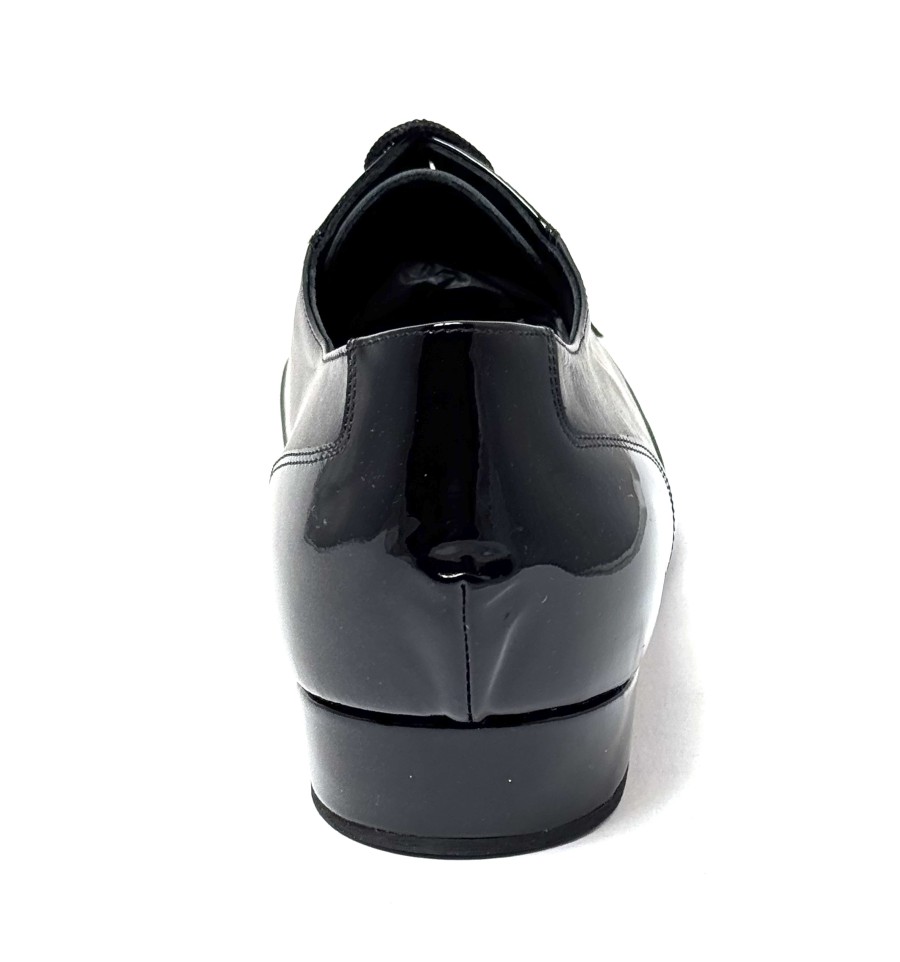 Scarpa da ballo per uomo ottima per ballo da sala liscio tango argentino latino americano allacciata articolo 1103 sottopiede in memory tomaia in vernice nera con riporti in pelle nera suola in cuoio pomiciato tacco 25