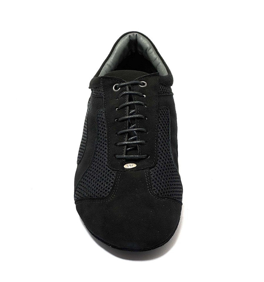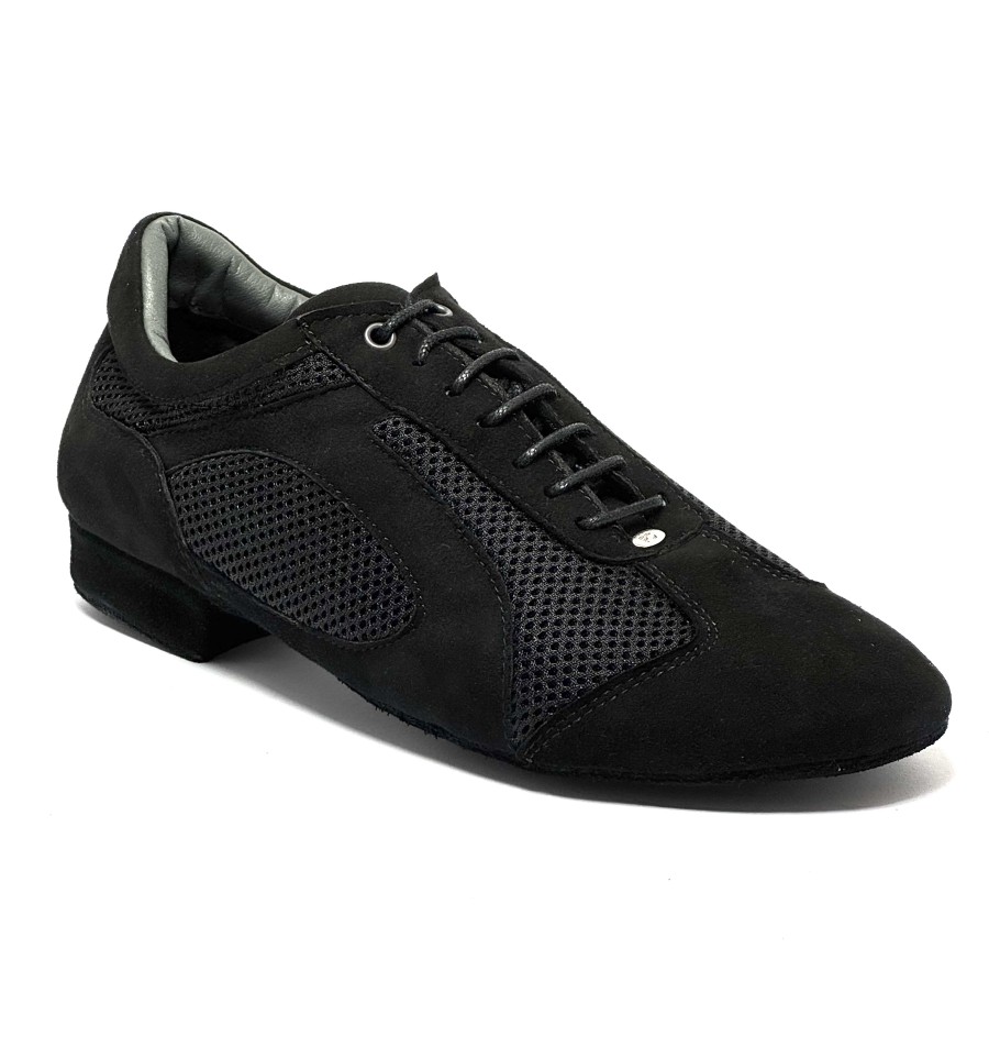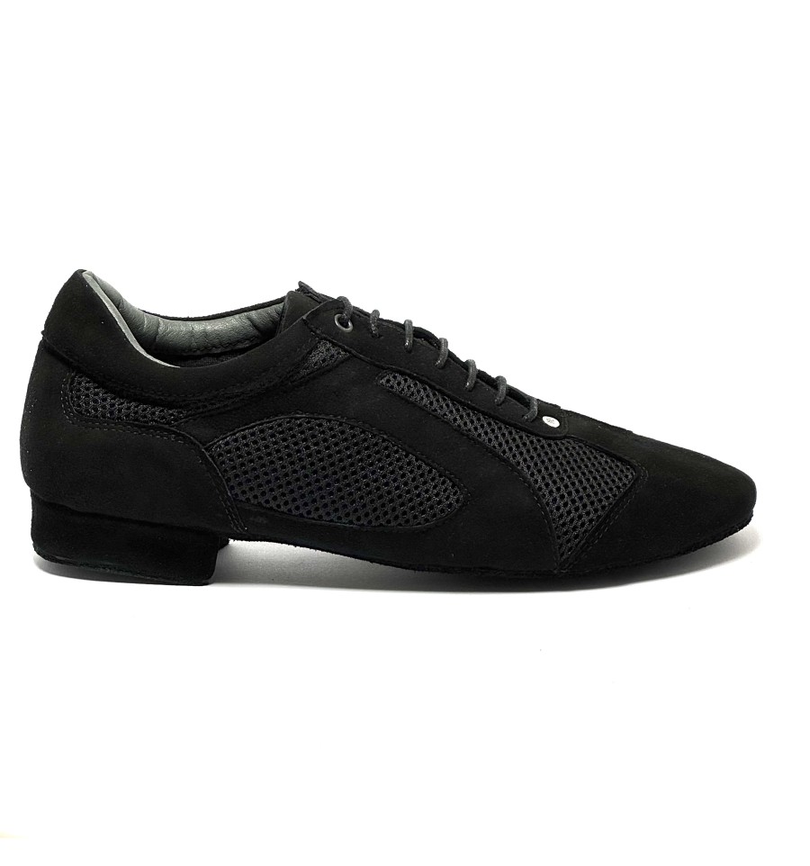 Scarpa da ballo per uomo ottima per ballo latino americano salsa bachata ballo da sala liscio tango argentino allacciata articolo PD VICTOR DA SILVA sottopiede in memory tomaia in nabuk nero con riporti in tessuto traspirante nero suola bufalo tacco 20