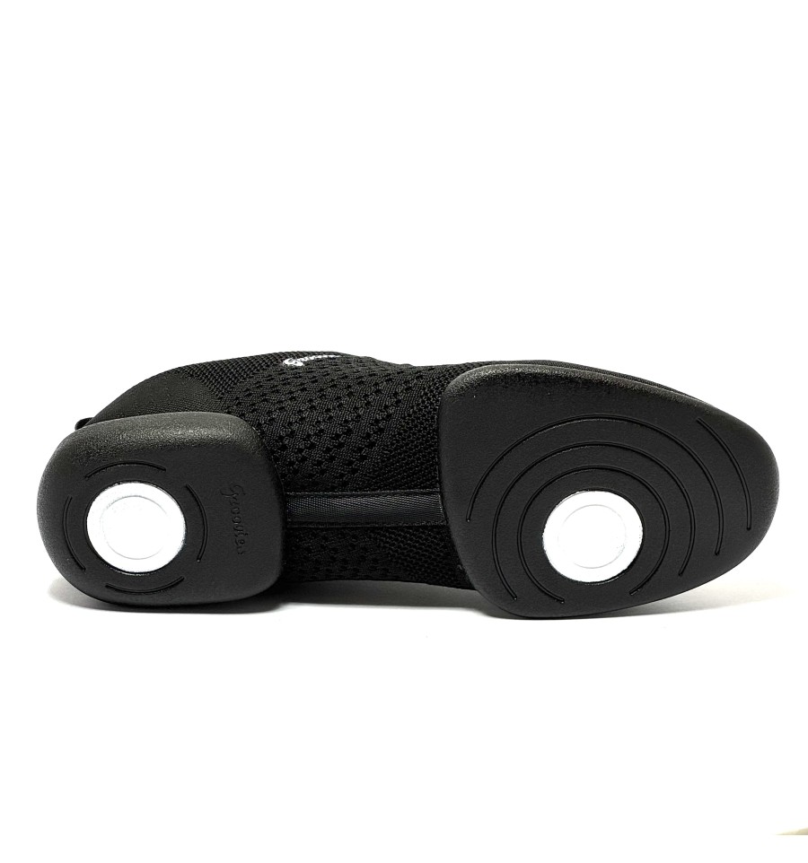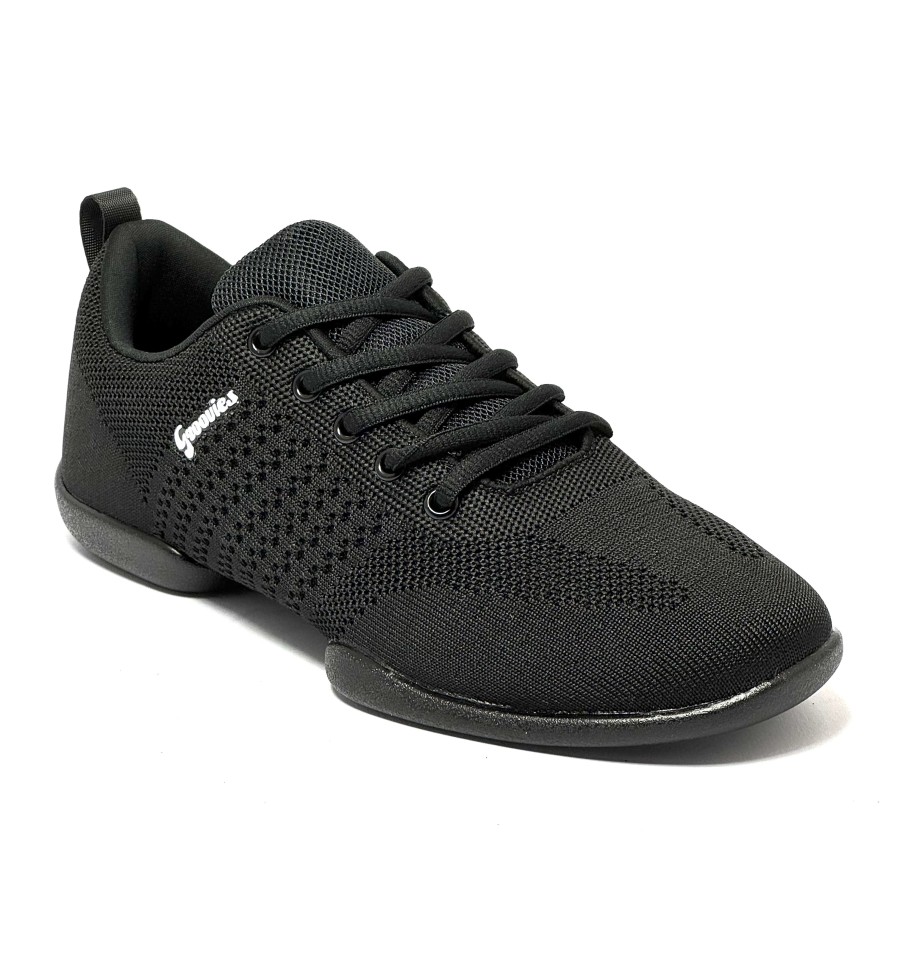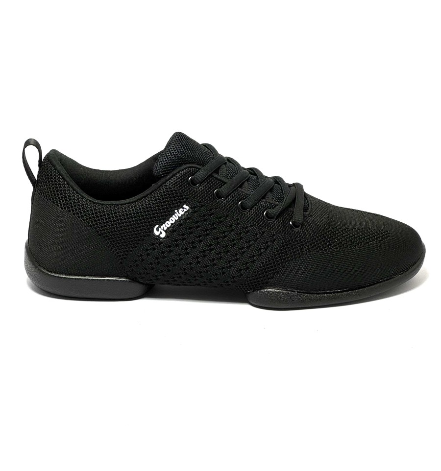Sneakers da ballo unisex ottima per allenamento ballo da sala latino americano tango argentino allacciata articolo GROOVIES sottopiede memory tomaia in tessuto traspirante nero suola spezzata in gommina da ballo tacco 20